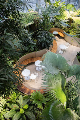 ⇦ تتكون من 3 طوابق و تضم السلالم و المصاعد و الحمامات بالإضافة إلى الكافيتيريا. يغطي بئر السلالم جدار حي به 25000 نوع من النبات. كما يحتوي المكان على مساحات إجتماعات و طاولات و مقاعد تكفي لـ800 شخص.